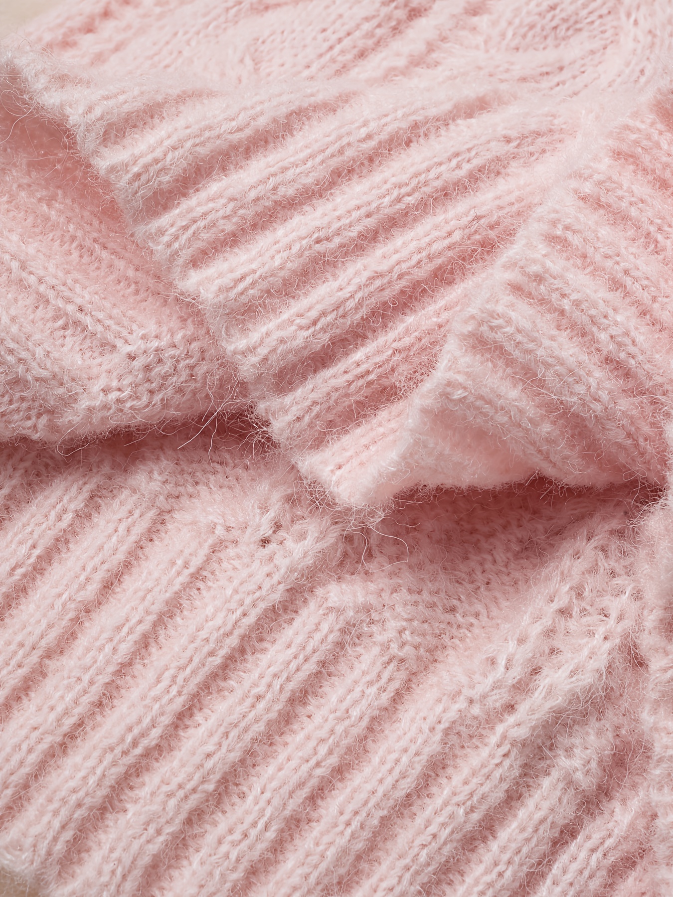 Gentle Pink Lazy Style Premium Loose V-Neck Twist Sweater for Women