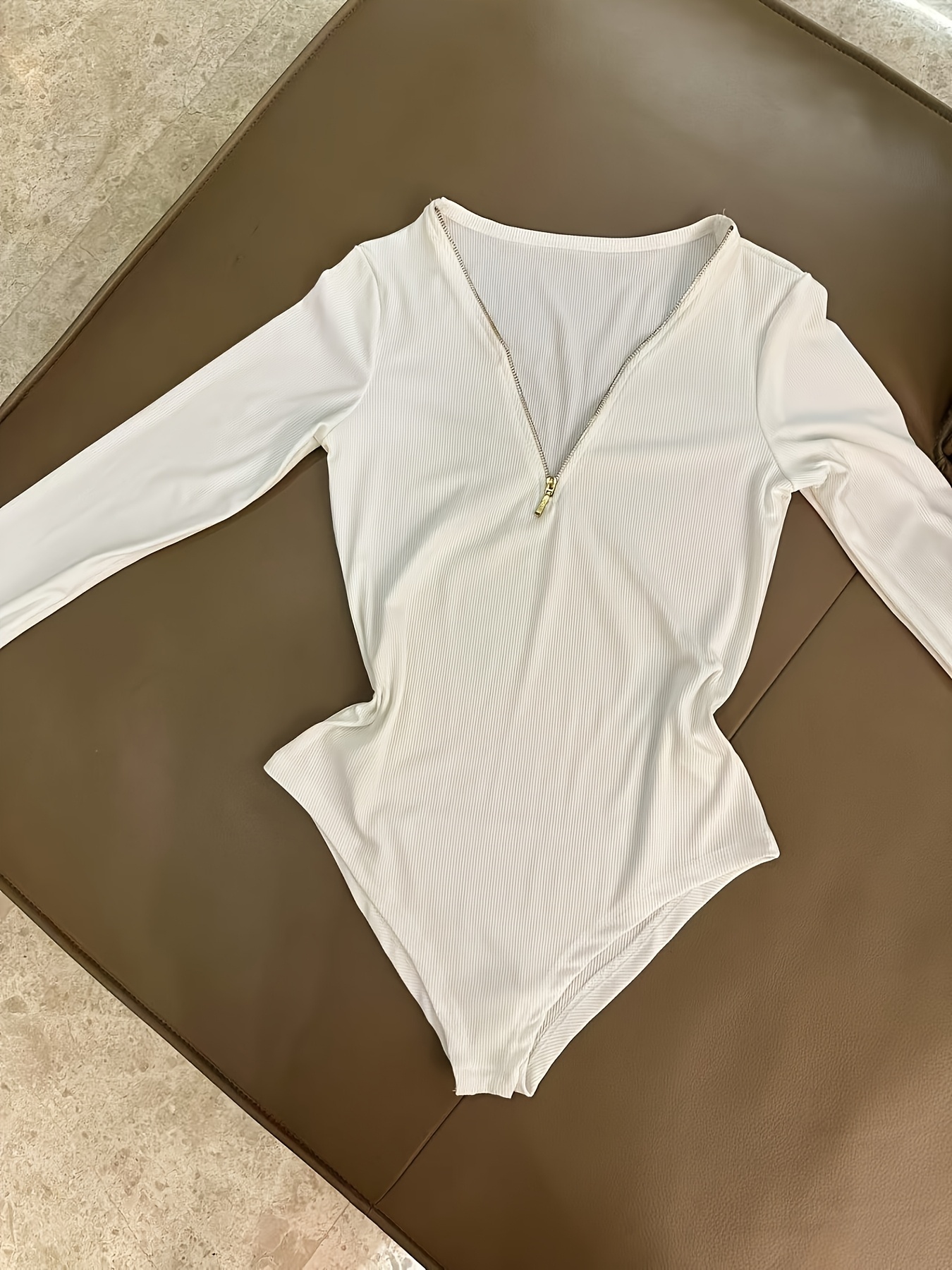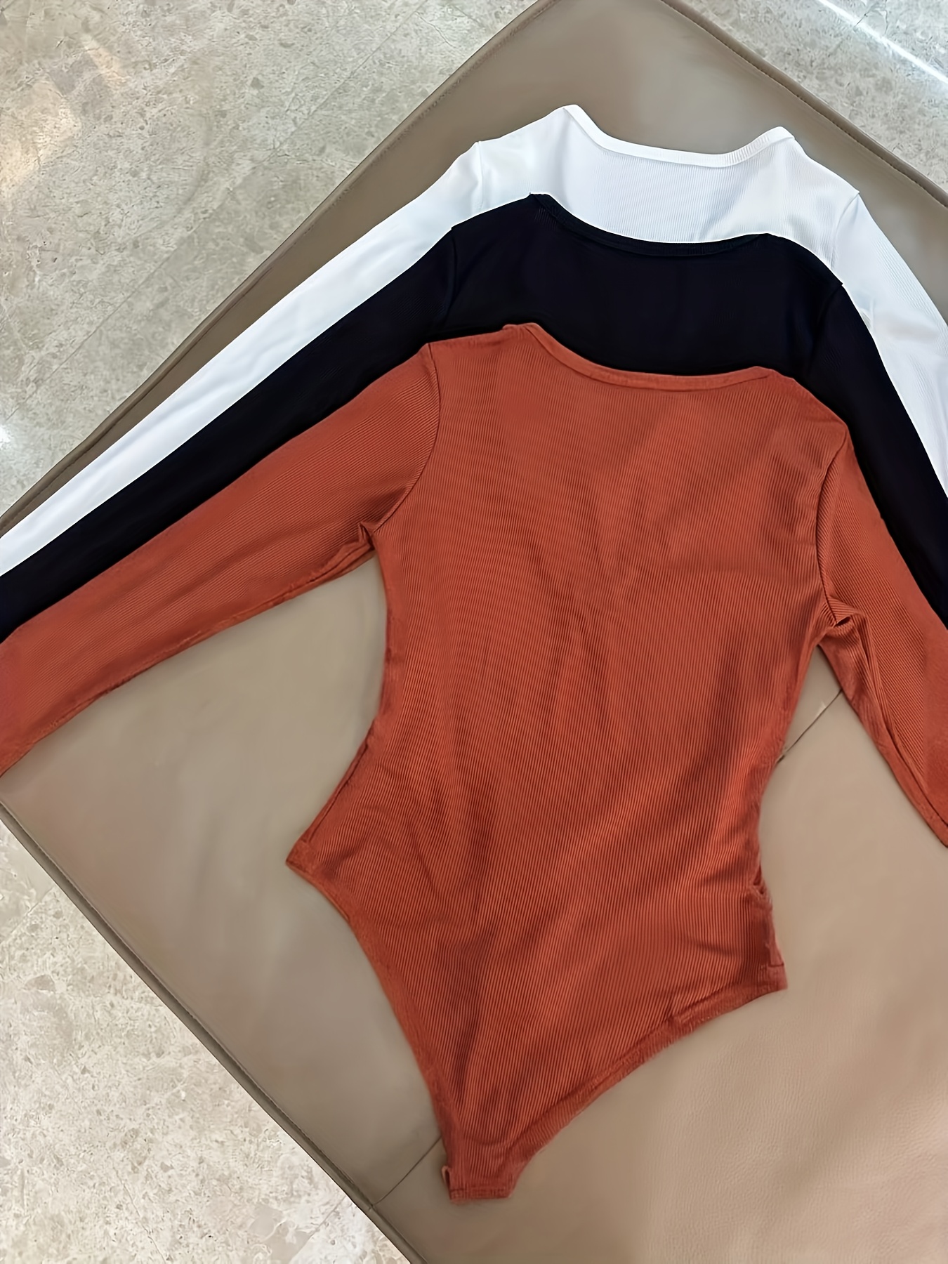 Set of 3 Autumn and Winter V-Neck Ribbed Zipper Stretch Comfortable Versatile Long-Sleeve Pullover Jumpsuit