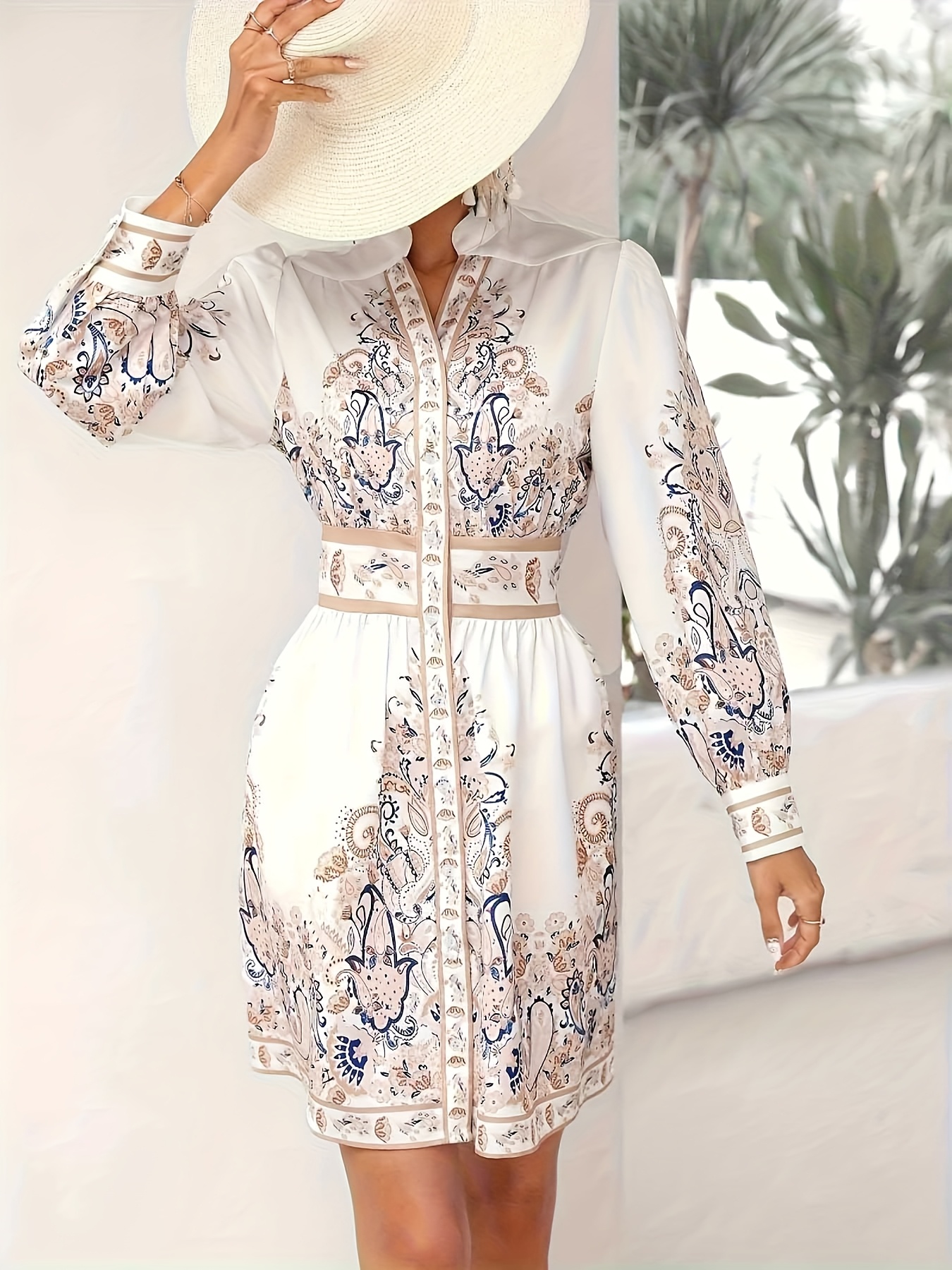 Women's Bohemian Floral Print Button-Front Closure, Machine Washable Vacation Outfit for Women, Formal Casual Events, Floral Print Blouse, Autumn Clothing, Nontransparent Fabric
