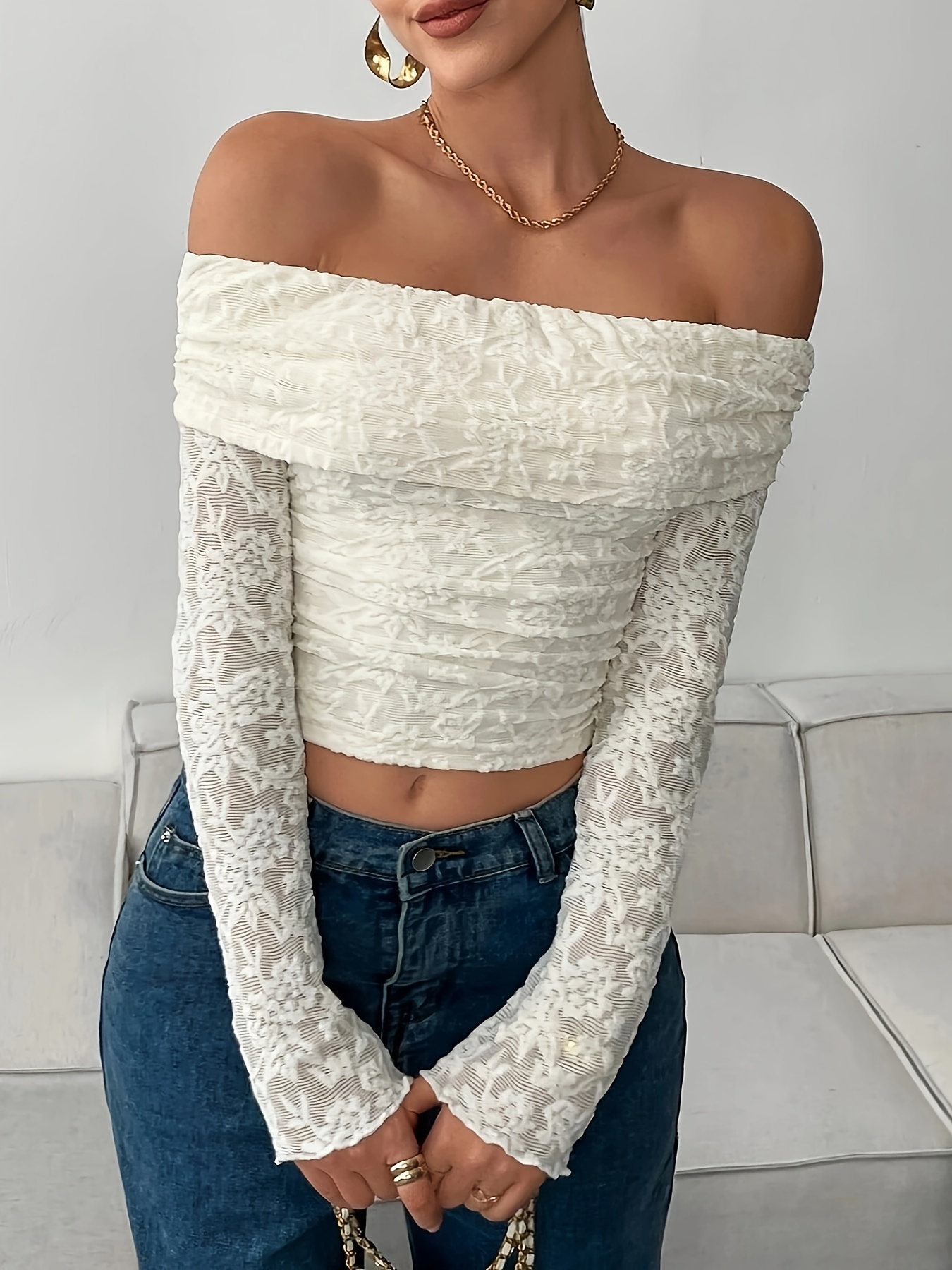 Women's Elegant Off-the-Shoulder Long Sleeve Blouse - Chic Tops for Parties, Formal Events & Casual Attire - Machine Washable Fall/Winter Shirt - Minimalist Women's Clothing, Party Outfit, Sophisticated Look, Durable Material, Stylish Top, Fashion Lovers