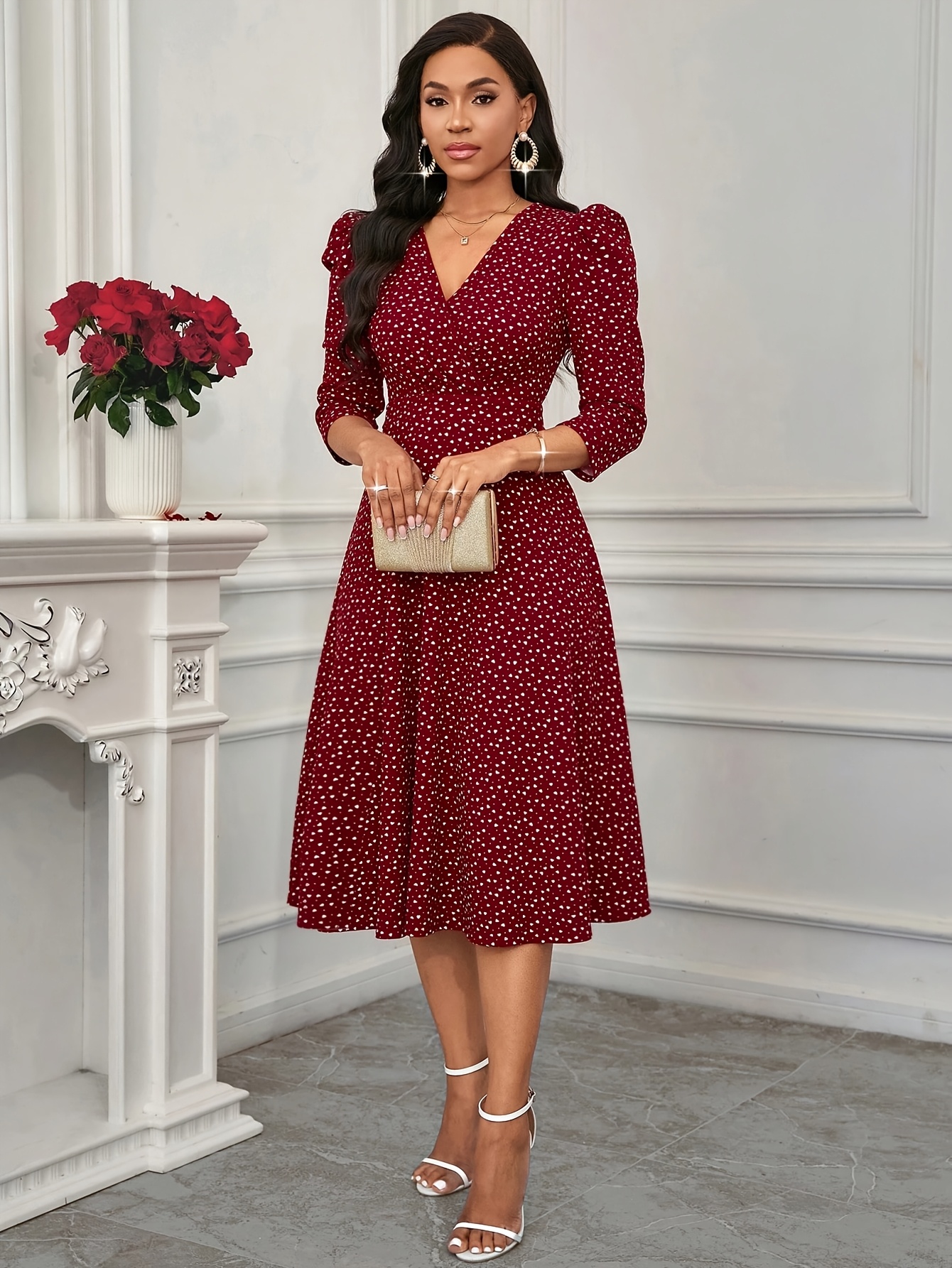 Women's Elegant Red Formal & Everyday dress - Flared skirt, Machine Washable Party, Work, Date Outfit - All-Season Chic Women's Dress, Workwear Attire, Flowy Fabric Gown, Comfortable Material, Professional Women