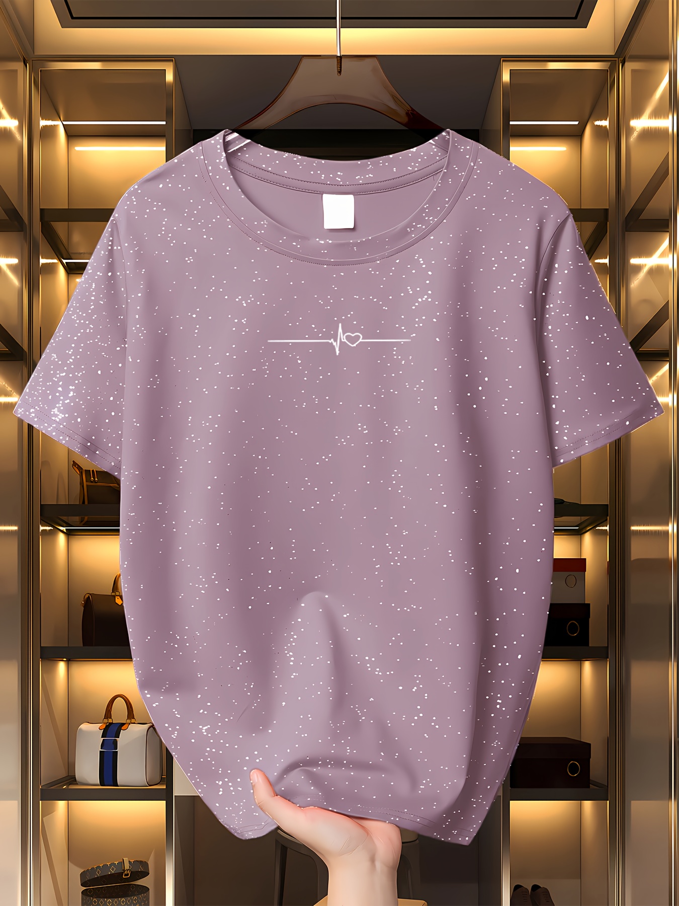 Women'S Sparkly Sequin Short Sleeve T-Shirt - Round Neck, Beige Casual Top for Spring/Summer, Glittery and Stylish, Perfect for Casual Attire