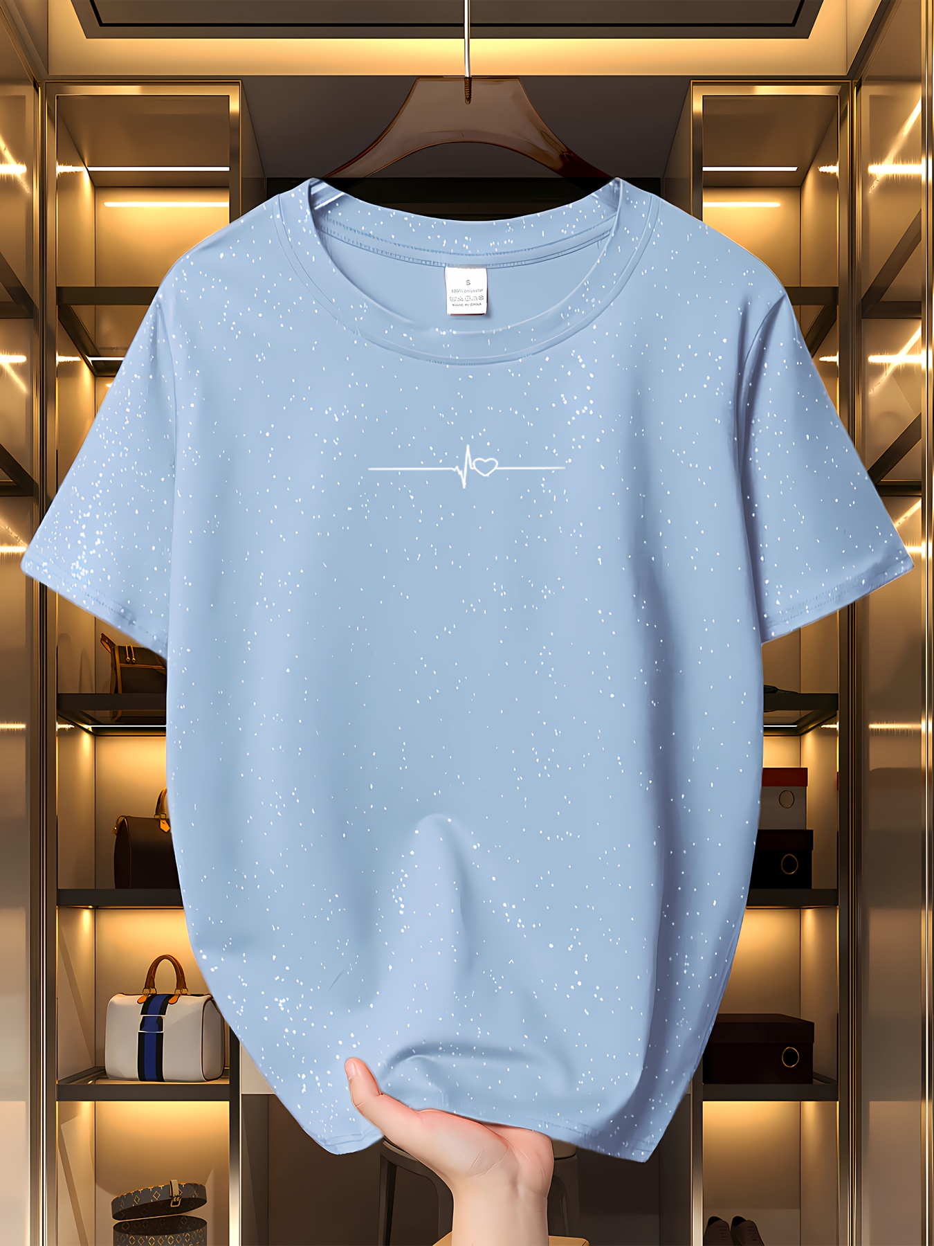 Women'S Sparkly Sequin Short Sleeve T-Shirt - Round Neck, Beige Casual Top for Spring/Summer, Glittery and Stylish, Perfect for Casual Attire