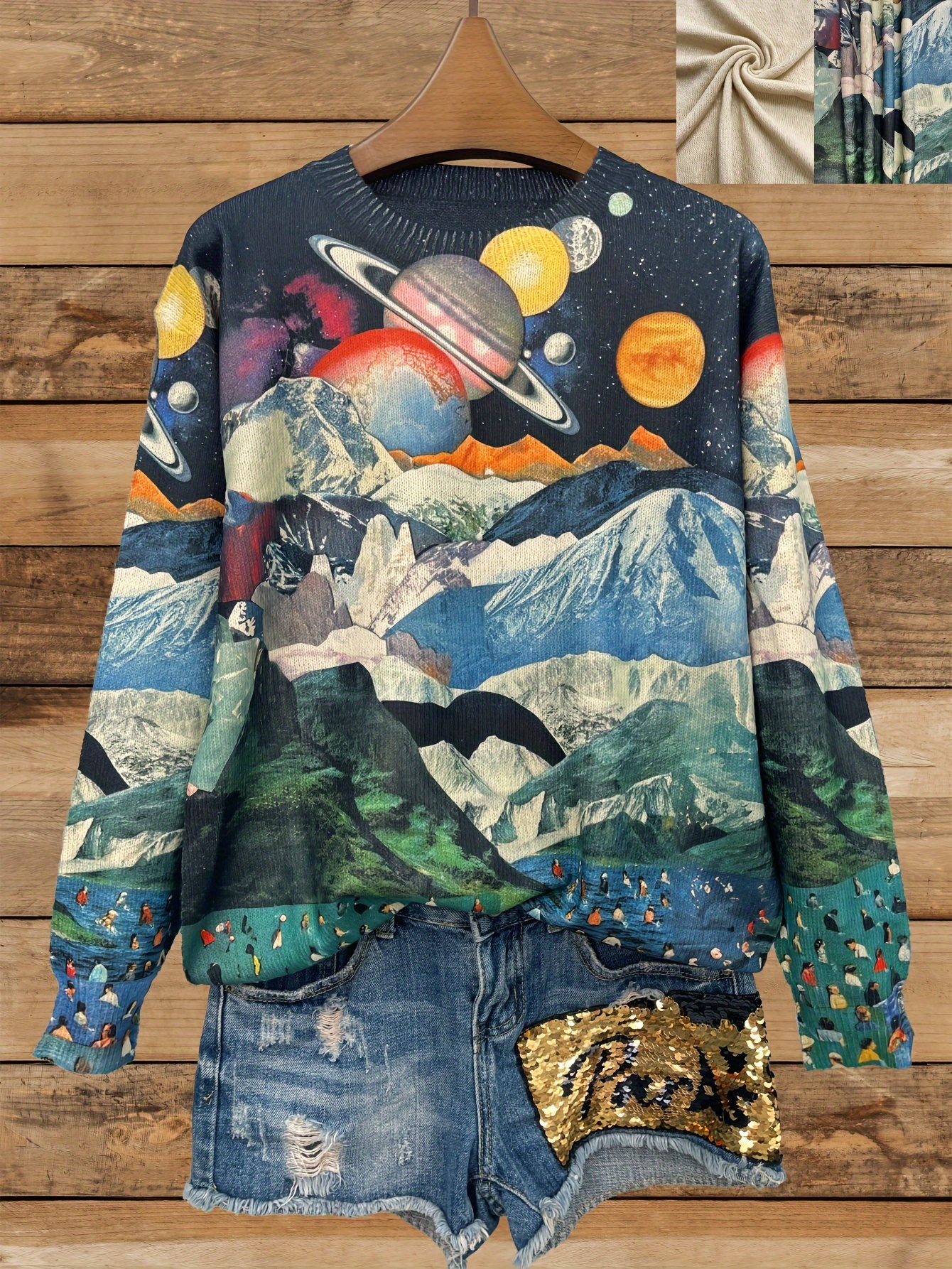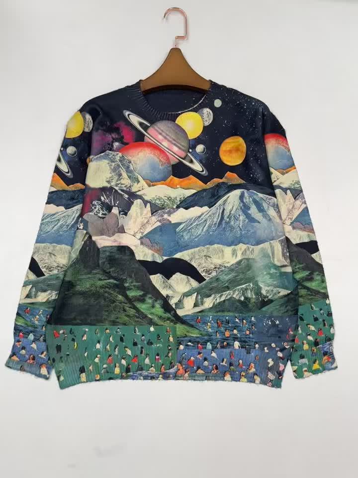 [All-Over Print, Thin Sweater] All-Over Print Thin Sweater | Universe Pattern, Casual Crew Neck Long Sleeve, Women's Clothing