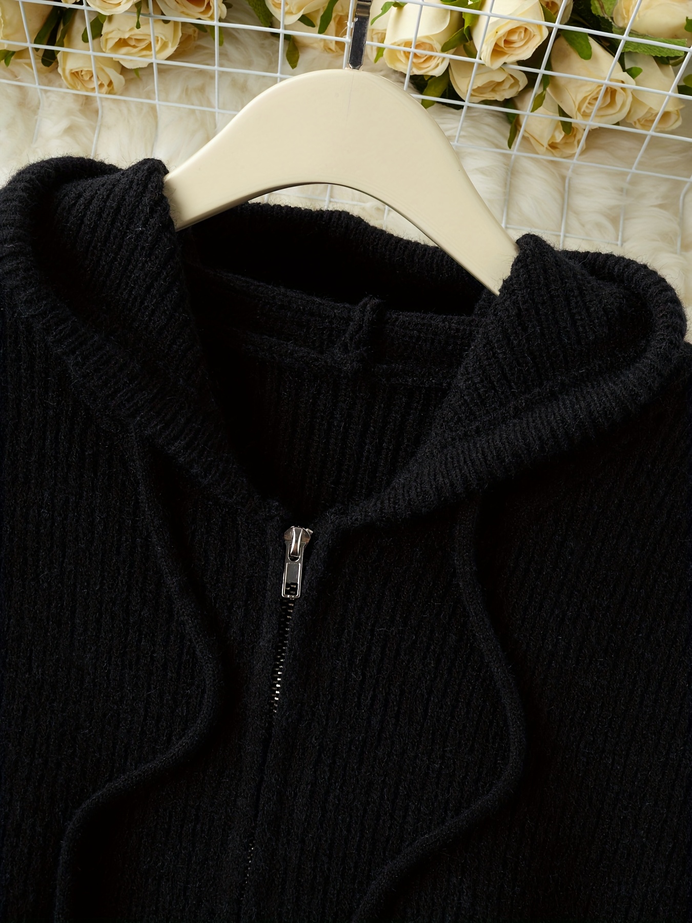 Women's Casual Oversized Hooded Cardigan - Thickened Winter Sweater with Double Zipper Front, Ribbed Cuffs & Hem, Earthy Brown, Medium Stretch for Fall & Winter Layering