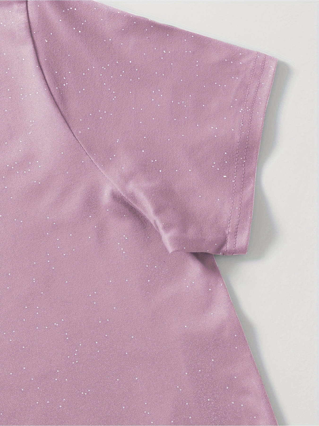 Women'S Sparkly Sequin Short Sleeve T-Shirt - Round Neck, Beige Casual Top for Spring/Summer, Glittery and Stylish, Perfect for Casual Attire